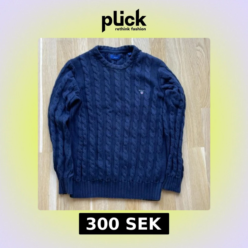Mörkblå kabelstickad tröja från GANT med rund hals och diskret logga broderad på bröstet. Storlek 146/152, 11-12 år.