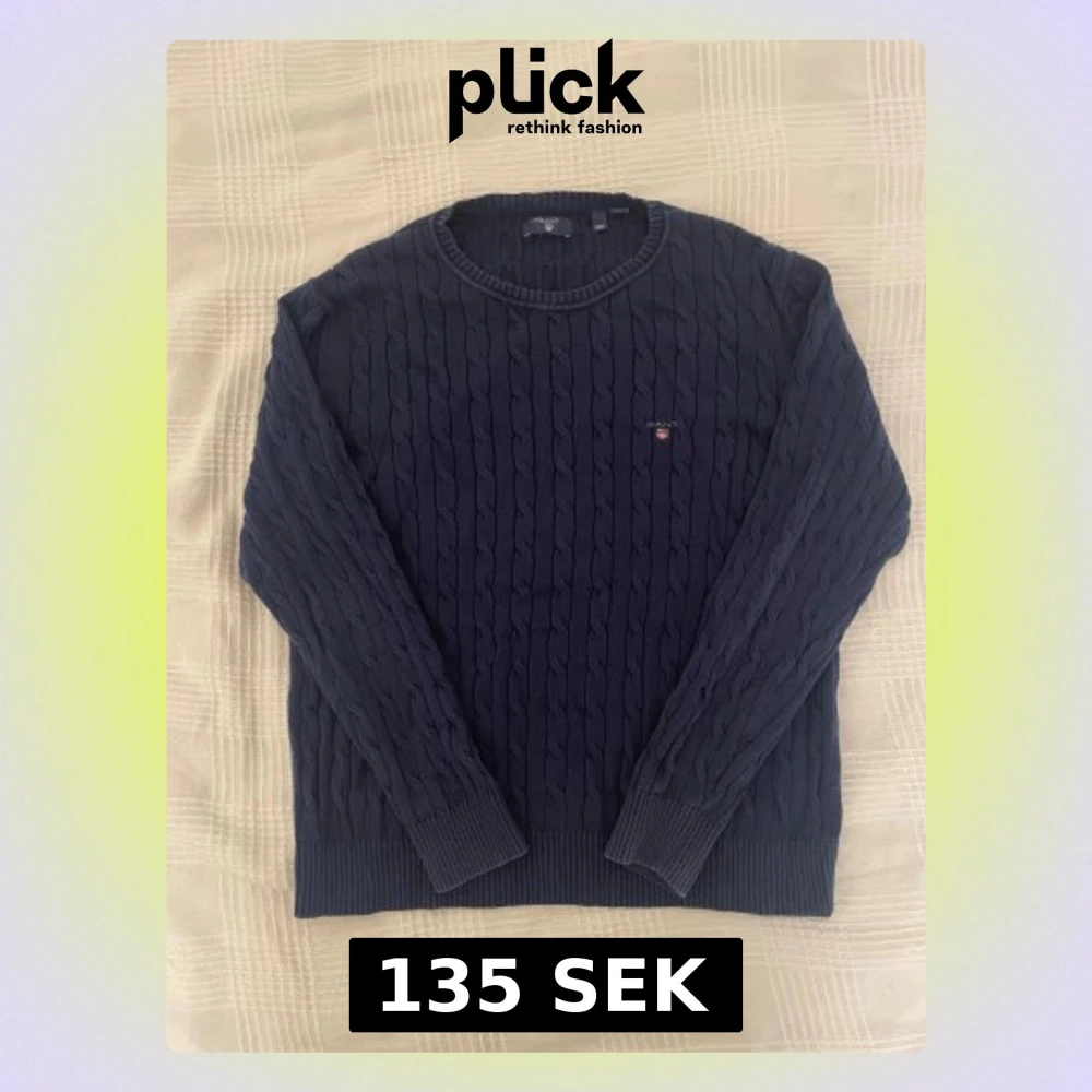 Snygg marinblå kabelstickad tröja från GANT med rund hals och diskret logga broderad på bröstet. Tröjan har ribbade muddar vid ärmslut och nederkant, och är gjord i mjuk bomull. Perfekt för dig som gillar klassisk stil med en modern touch.
