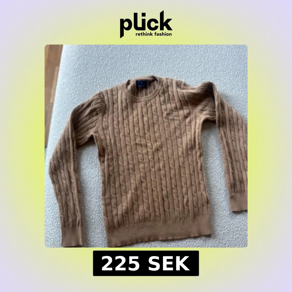 Säljer en klassisk beige kabelstickad tröja från Gant. Tröjan har rund halsringning, långa ärmar och ribbade muddar vid ärmslut och nederkant. Perfekt för lager-på-lager och stilrena outfits.