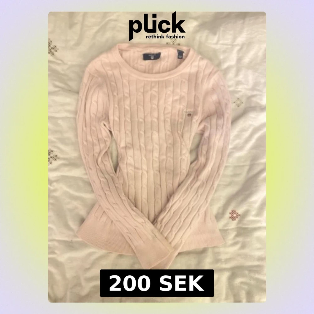 Supersnygg ljusrosa kabelstickad tröja från Gant med rund halsringning och diskret logga broderad på bröstet. Tröjan har långa ärmar och ribbade muddar vid ärmslut och nederkant. Perfekt för dig som gillar klassisk och stilren look.