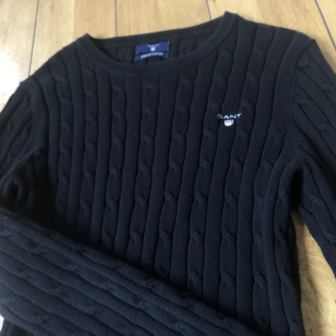 Svart Kabelstickad tröja från gant i storlek XS. I strechigt material! I gott skick:) Hör av er för fler bilder:)