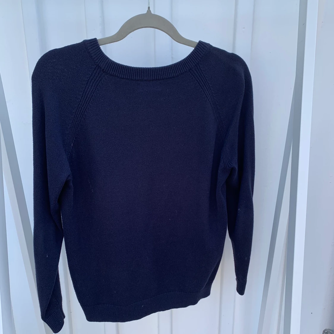 En lite tunnare stickad tröja från GANT i marinblå färg som har märket broderat i vitt på bröstet. Jag skulle tippa på storlek S/M men vet inte helt säkert pågrund av avklippt lapp.