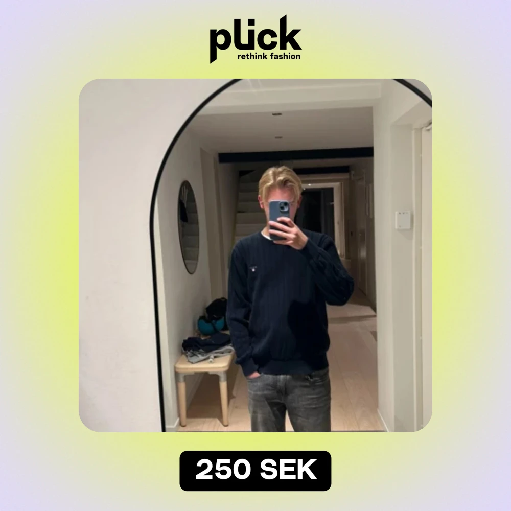 En blå Kabelstickat Gant tröja som är riktigt skön och ha på sig på vintern och hösten. Skick 10/10 ny andvänd.