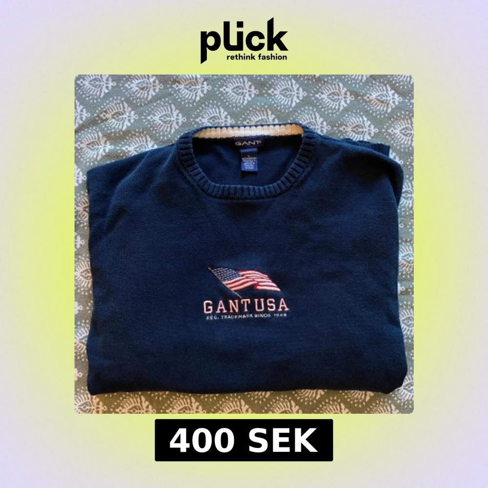 Riktigt snygg mörkblå gant tröja som är stickad. Den har inga defekter och bara använd någon gång. Pris går att diskutera (Large)