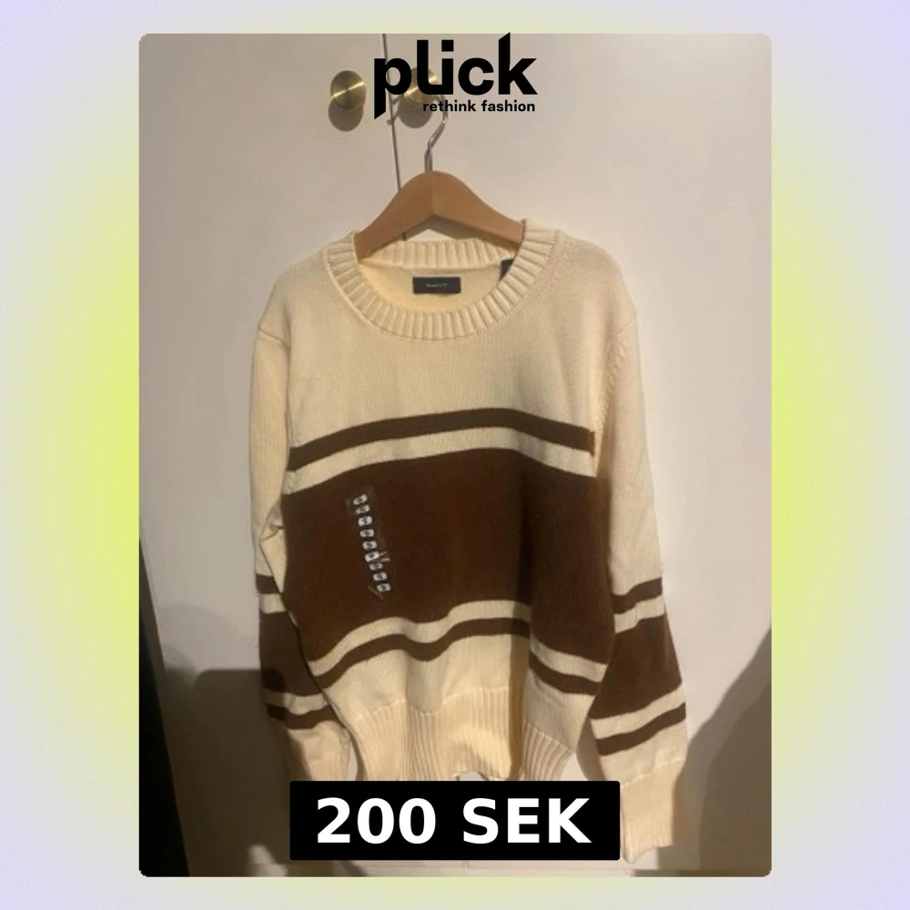 Säljer en stickad tröja från GANT i beige och brunt med breda ränder. Tröjan har rund hals, ribbade muddar och lång ärm. Pris är går att diskutera