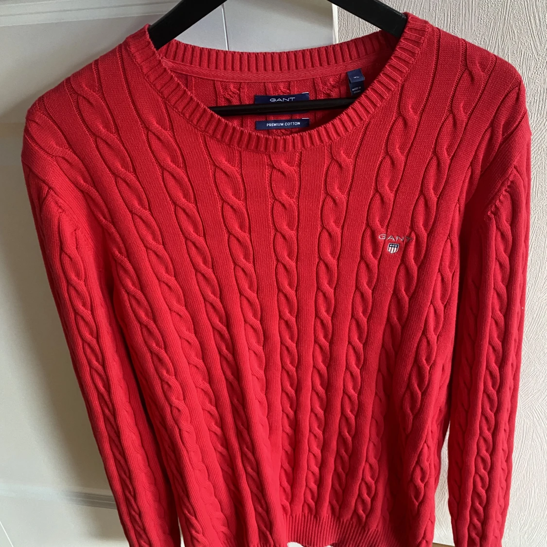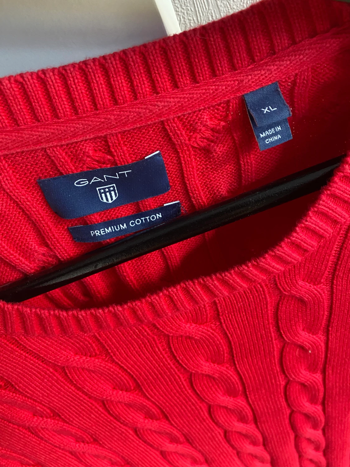 Kabelstickad Gant tröja storlek XL, känns som en L/XL. Använd 1-2 ggr. Hittat längst bak i garderoben som ny