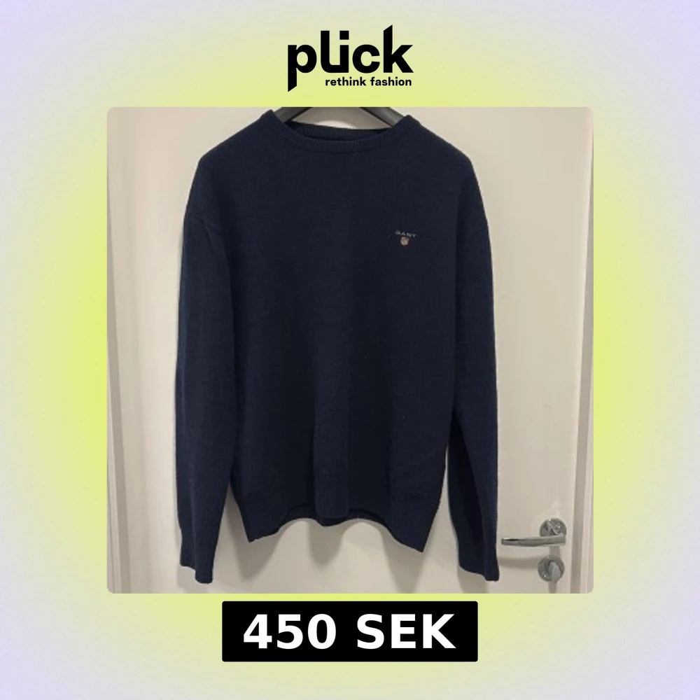 Säljer en mörkblå stickad tröja från GANT i storlek XL. Tröjan har en klassisk rund halsringning och är långärmad.