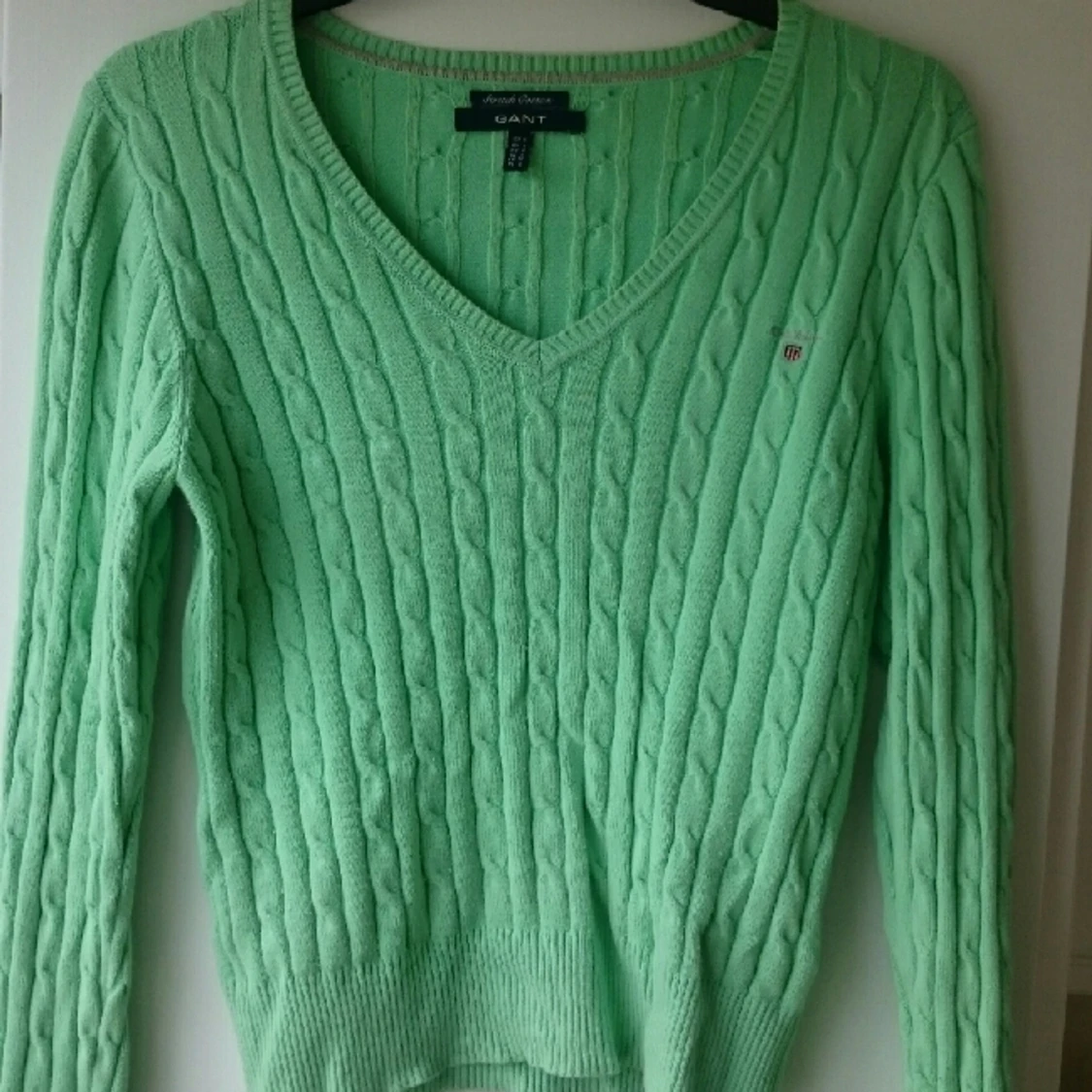 Stickad tröja från Gant. Ljusgrön, stretchig. Passar 36-40 strl. Vår och sommar -färg! Använd och lite sliten men fortfarande fin. 88% bomull, 10%polyamid, 2% elastan. Nypris 1199kr