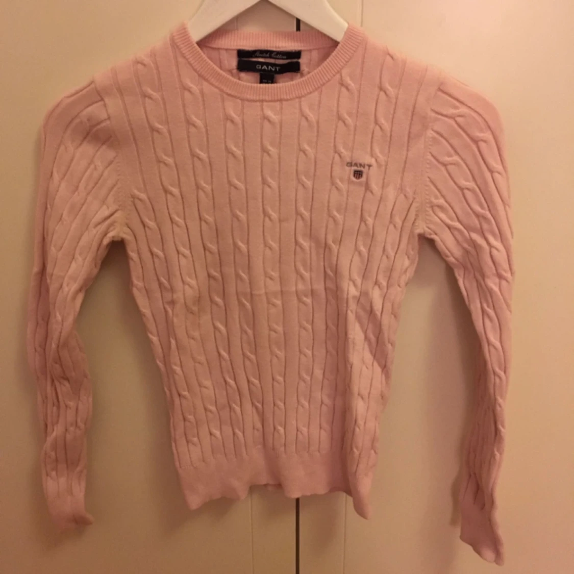 Ljusrosa kabelstickad tröja från gant, köpt på NK i stockholm