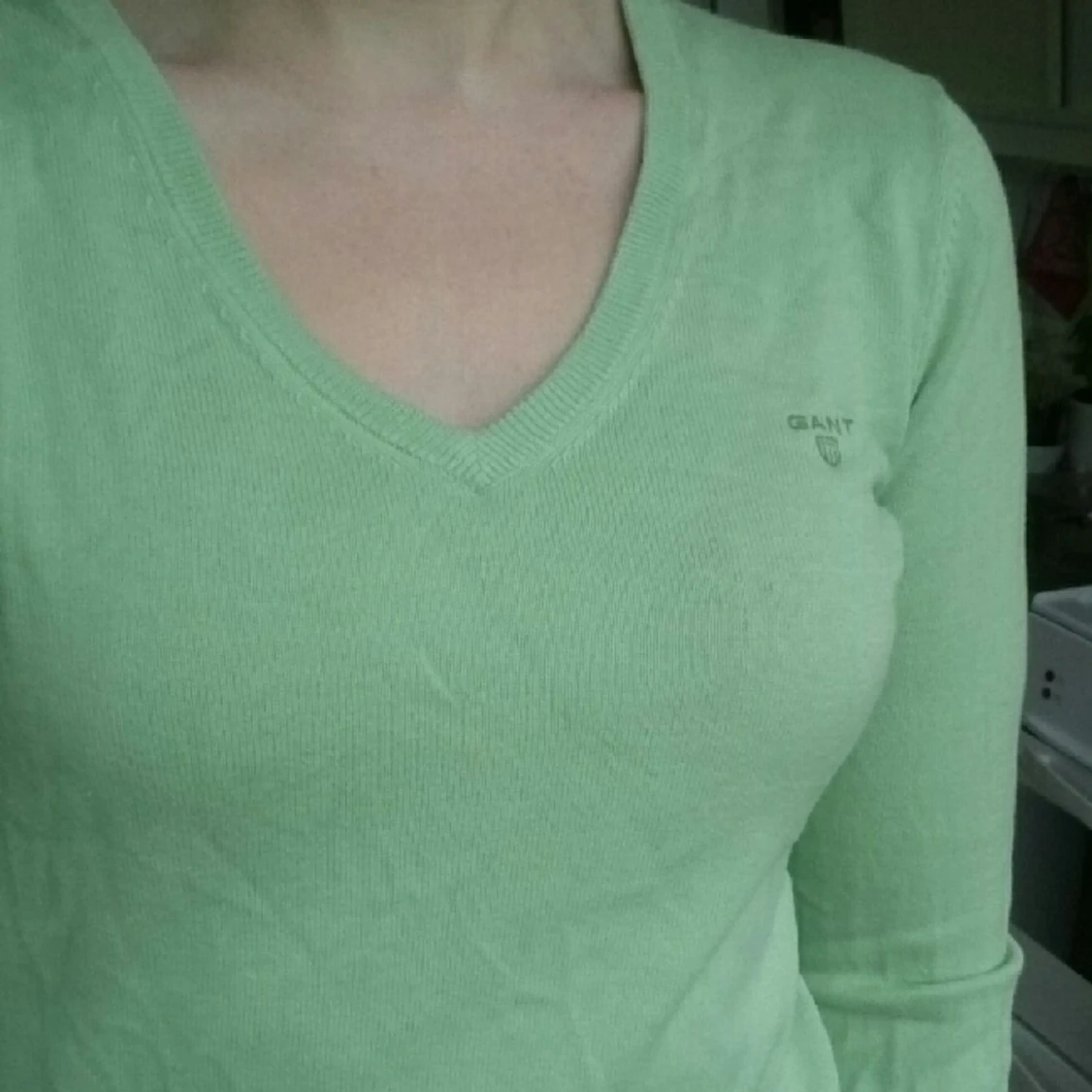 Stickad ljusgrön tröja från Gant. Använd men fin! 100% bomull Passar S-M, 36-40 jätteskön att ha på sig och somrig färg. Nypris: 1099kr