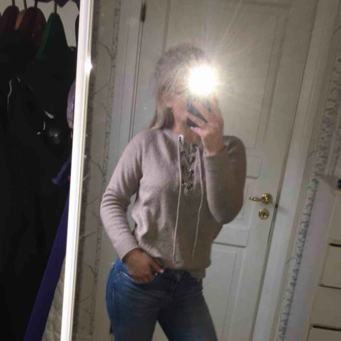 Stickad tröja med snörning vid bröstet, snörningen går att justera. Frakt ingår inte i priset