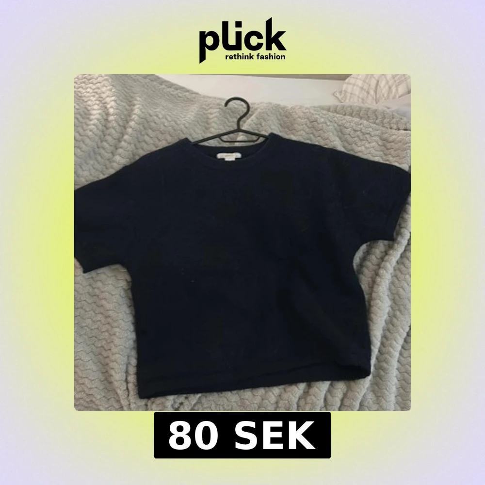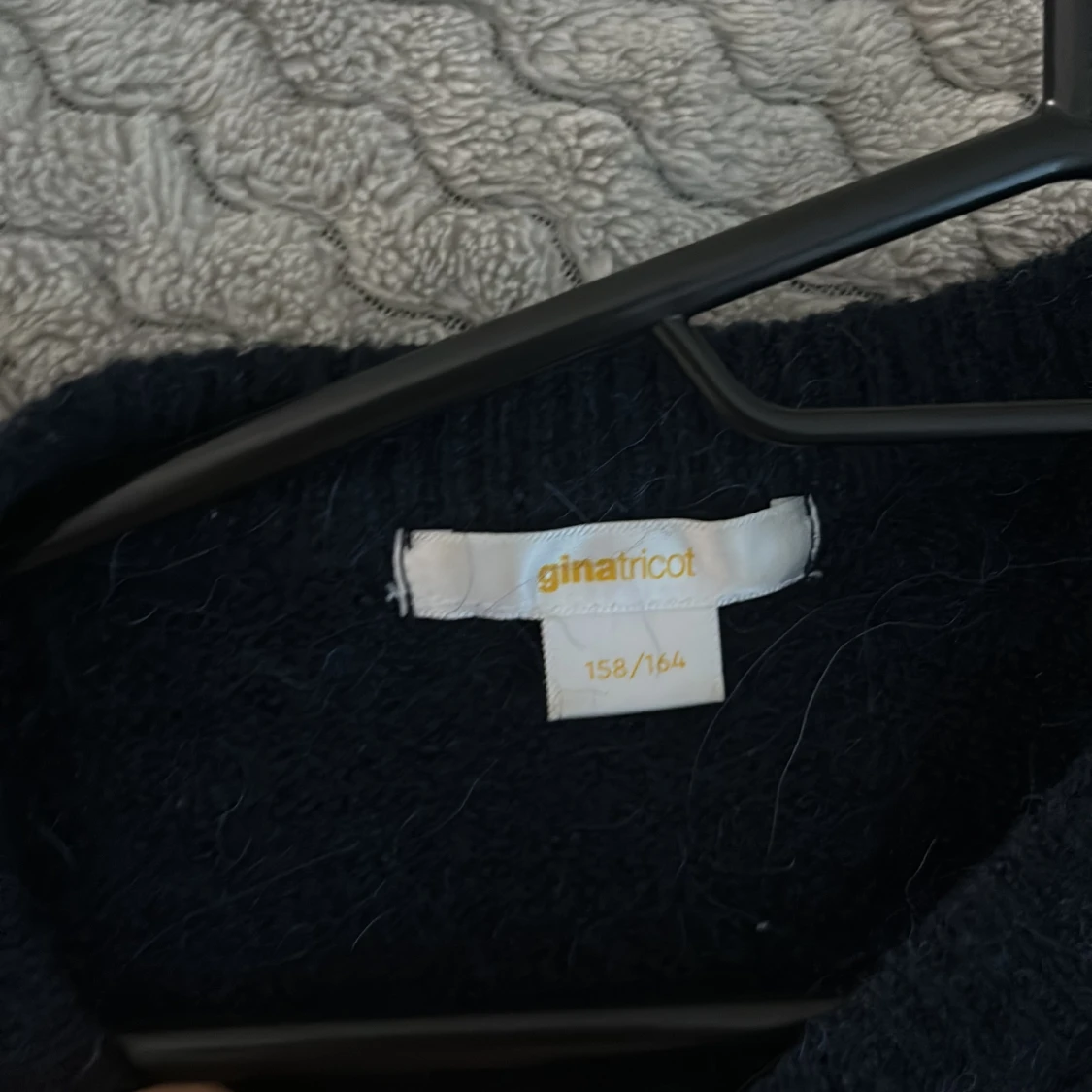 En basic marinblå stickad tröja från Gina Tricot i storlek 158/164. Modellen är rak med korta ärmar och rund halsringning. Perfekt till jeans eller shorts för en enkel och clean look.