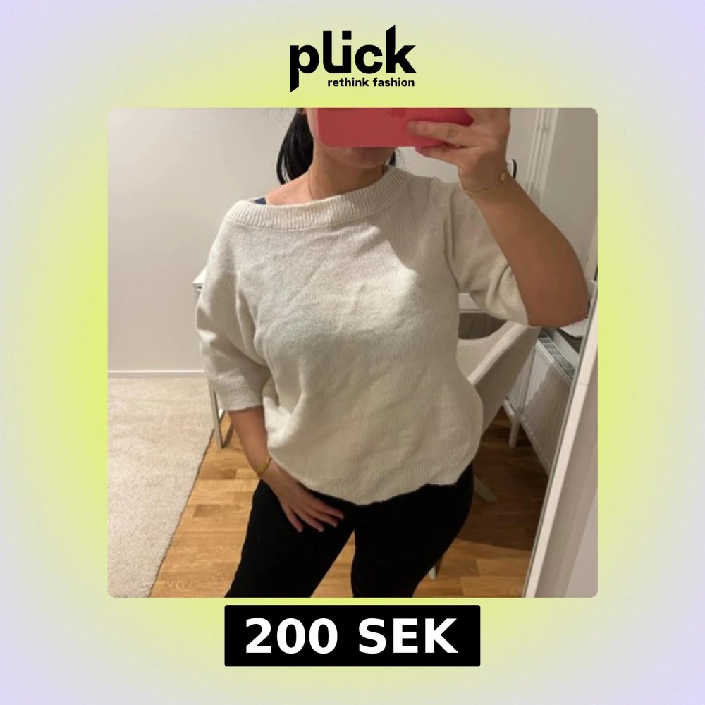Vit stickad tröja från Gina Tricot med bred ribbad halsringning och korta ärmar. Modellen är loose fit och har en mjuk, skön känsla som passar perfekt till jeans eller kjol. Enkel och clean design utan mönster eller detaljer.