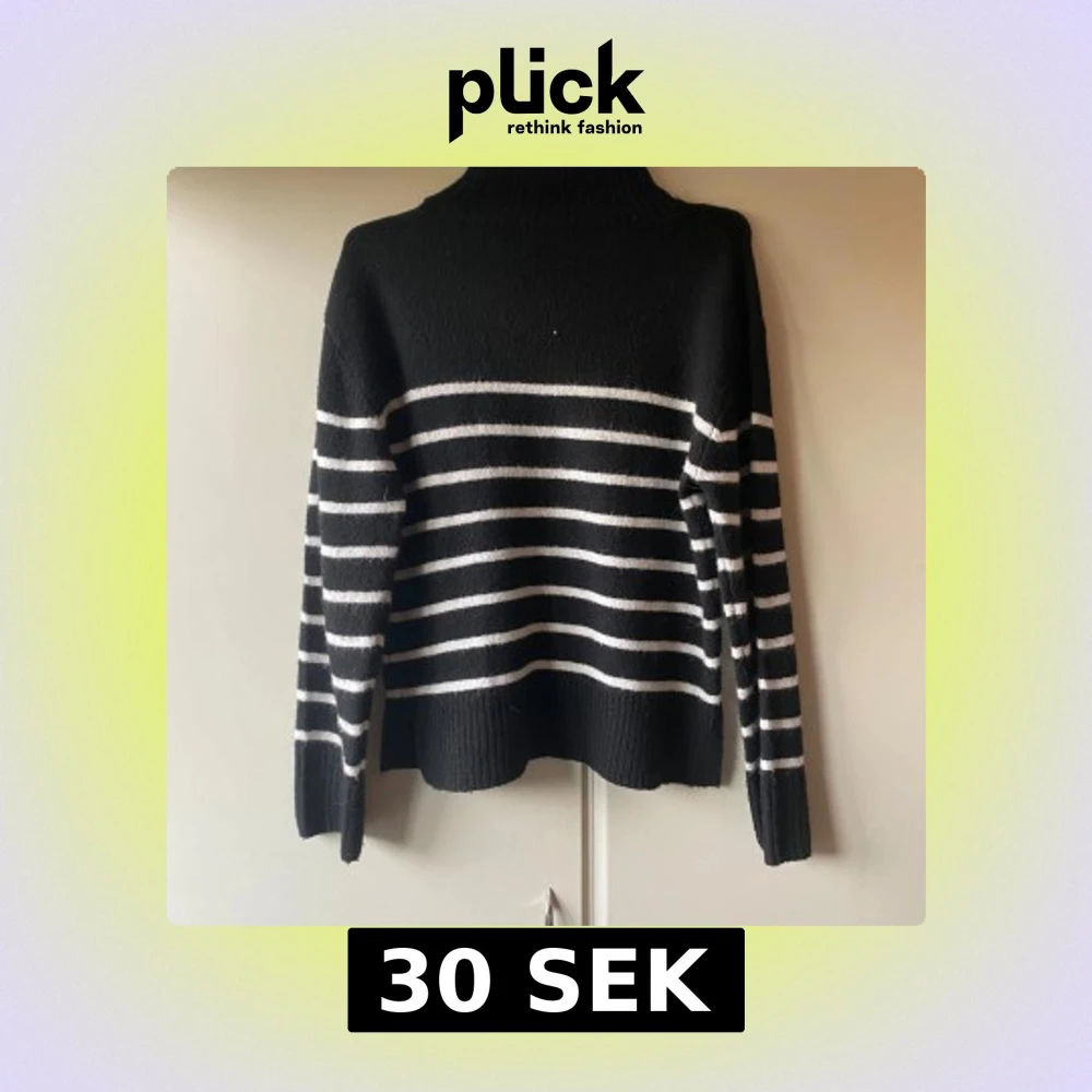 Säljer en svart från Gina Tricot med vita horisontella ränder. Tröjan är stickad Perfekt för dig som gillar klassisk stil med en twist. Passar dig som vill ha en mysig och snygg tröja