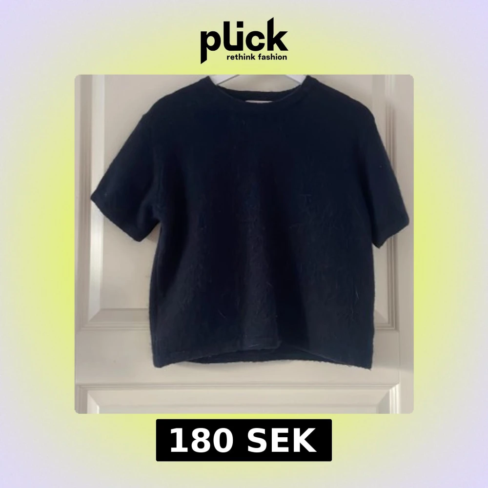 Svart stickad tröja från Gina Tricot i storlek 158/164. Modellen har korta ärmar och en rund halsringning. Materialet är mjukt och har en lite lurvig yta som ger en cool och mysig känsla. Perfekt för dig som gillar enkel och stilren look.
