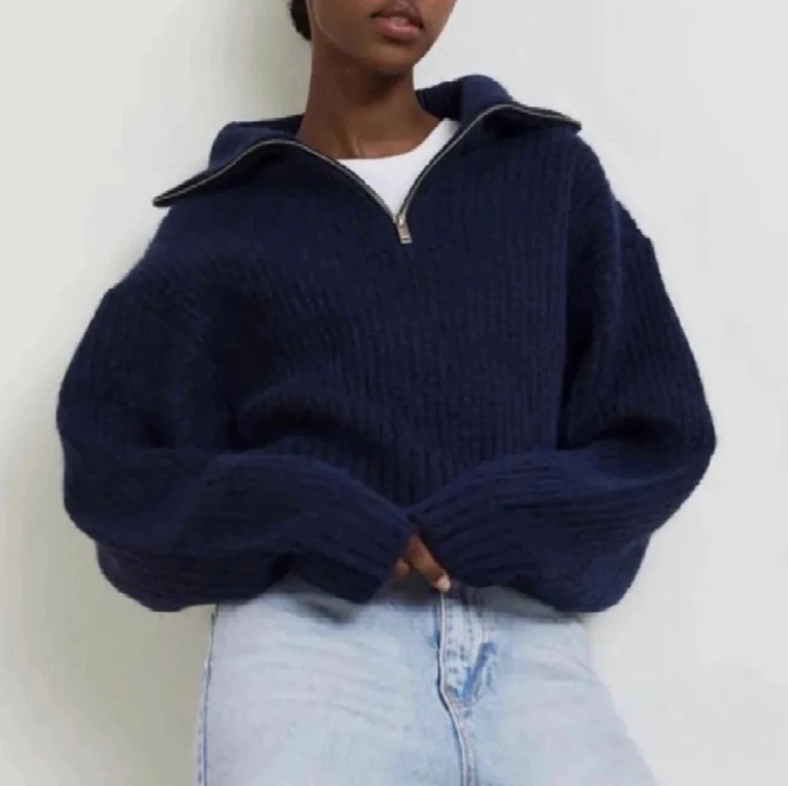 Säljer denna populära stickade half zip hoddien. Den är mörkblå och ifrån Gina tricot. Säljer den då jag inte använder den längre, men fint skick och väldigt bekväm. Storlek: M, passar mig som vanligtvis har S/M. Nypris : 399, säljer för 250.