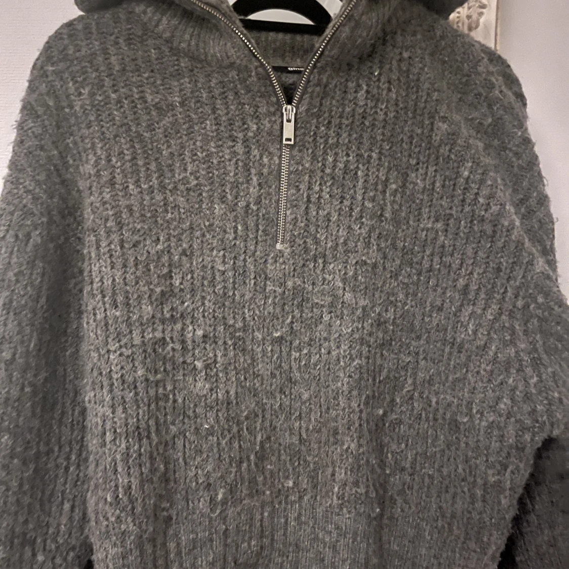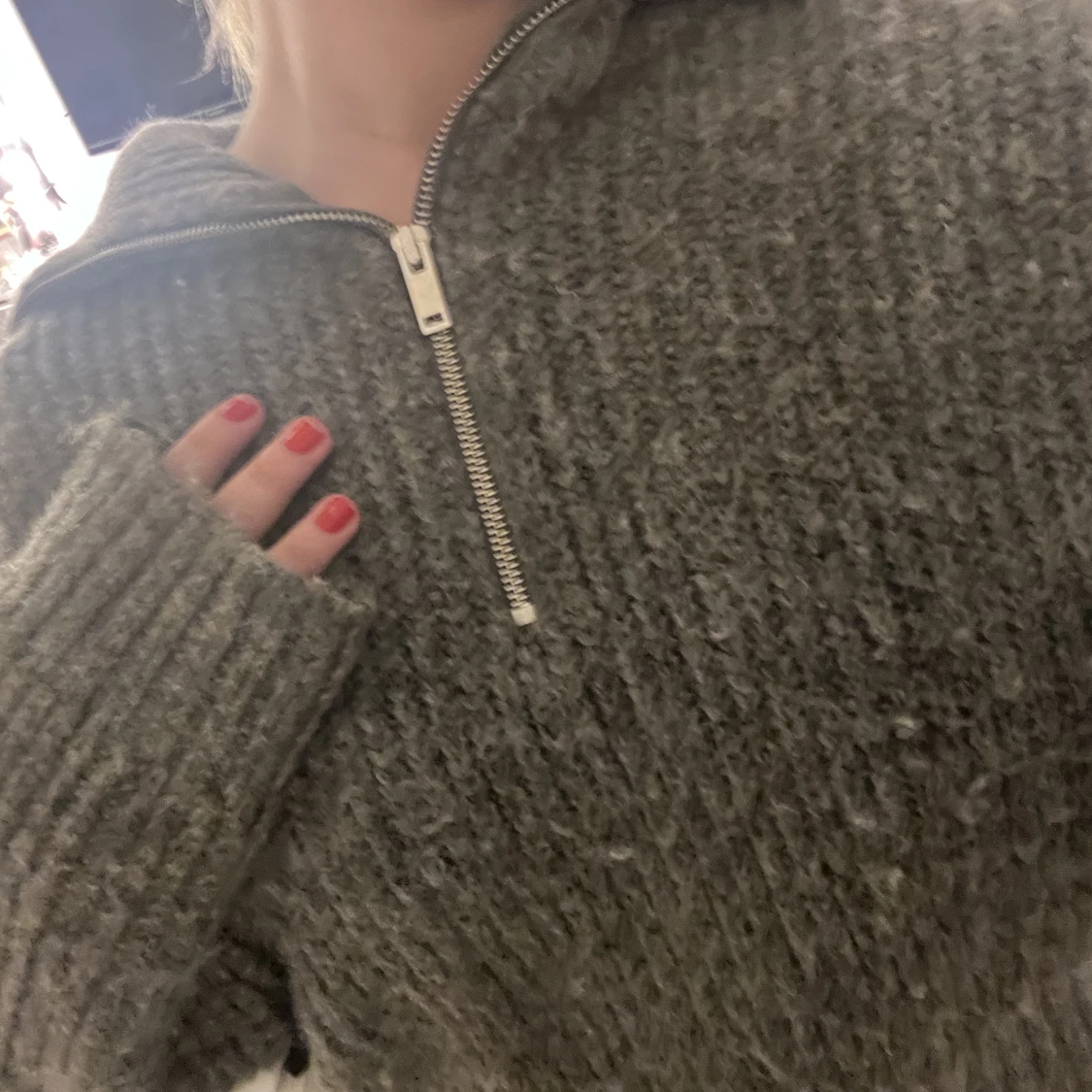 Säljer denna stickade tröjan med dragkedja. Den har lite slitningar på tyget men annars bra skick, den är i storlek L men skulle säga att den passar mer som M💓