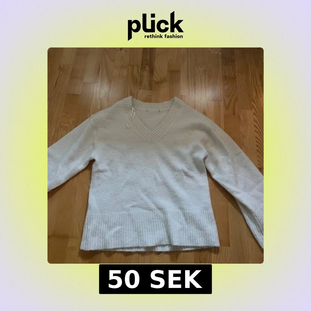Säljer en vit stickad tröja med v-ringad hals! I fint skick!