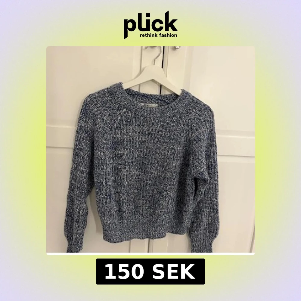 Säljer en blåvit stickad tröja från Gina Tricot i storlek XS. Tröjan har ett grovt stickat mönster, rund halsringning och långa ärmar. Perfekt för att hålla sig varm och ändå se chill ut. Passar dig som gillar en relaxed vibe.