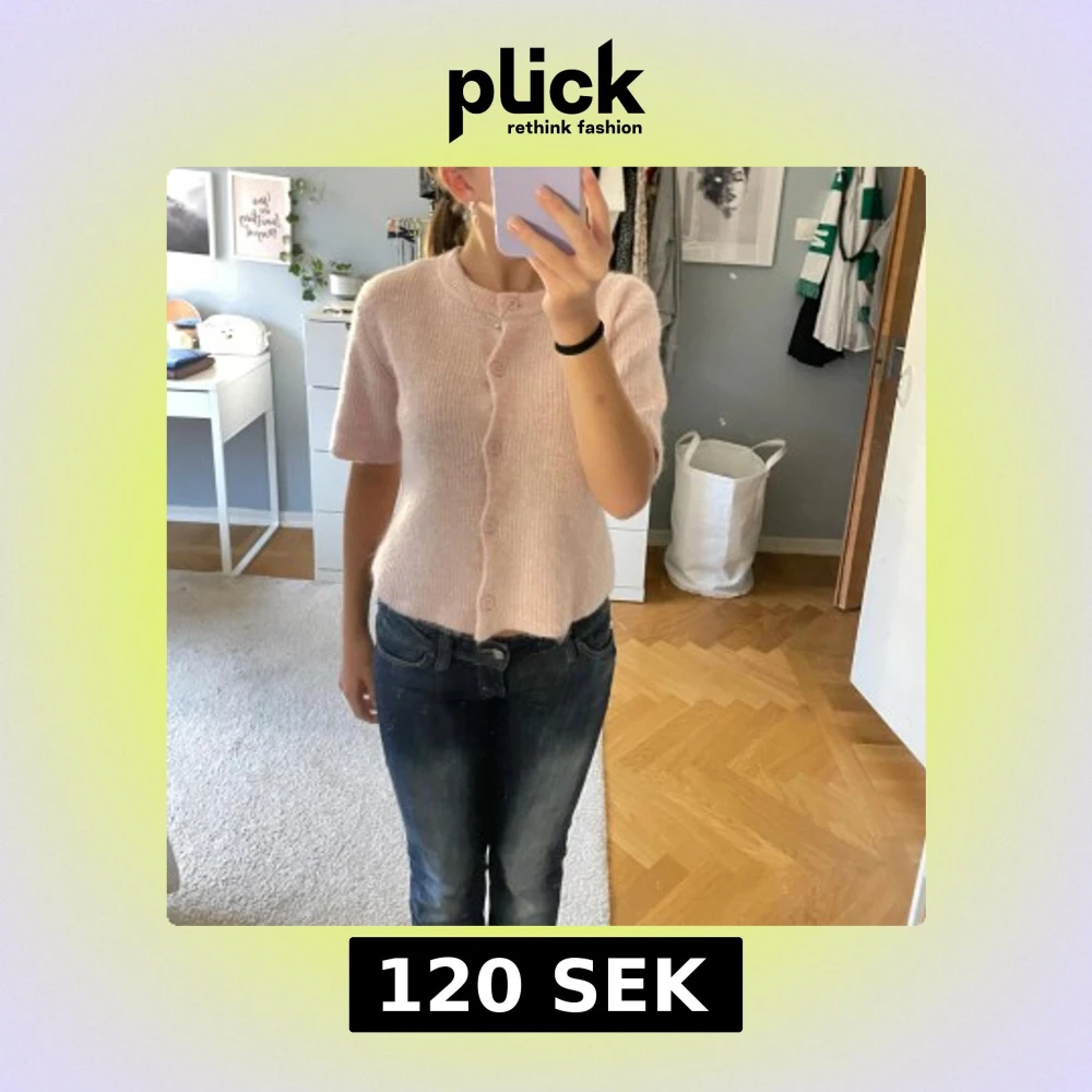 Superfin ljusrosa stickad kofta från Gina Tricot med korta ärmar och rund hals. Koftan har matchande rosa knappar framtill. Perfekt att ha på sig när det är lite kyligare ute!💗 skriv om ni har frågor