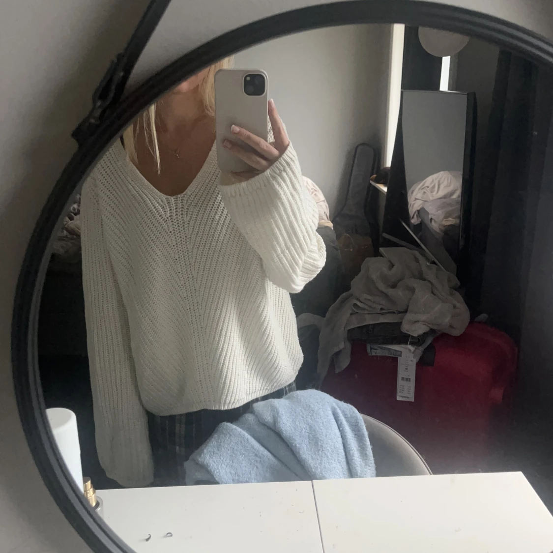 En fin vit stickad tröja, säljer då den inte kommer till användning🌸