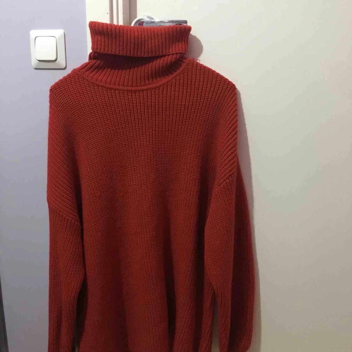 Röd, mysig stickad tröja. Använd fåtal gånger, väldigt gott skick.