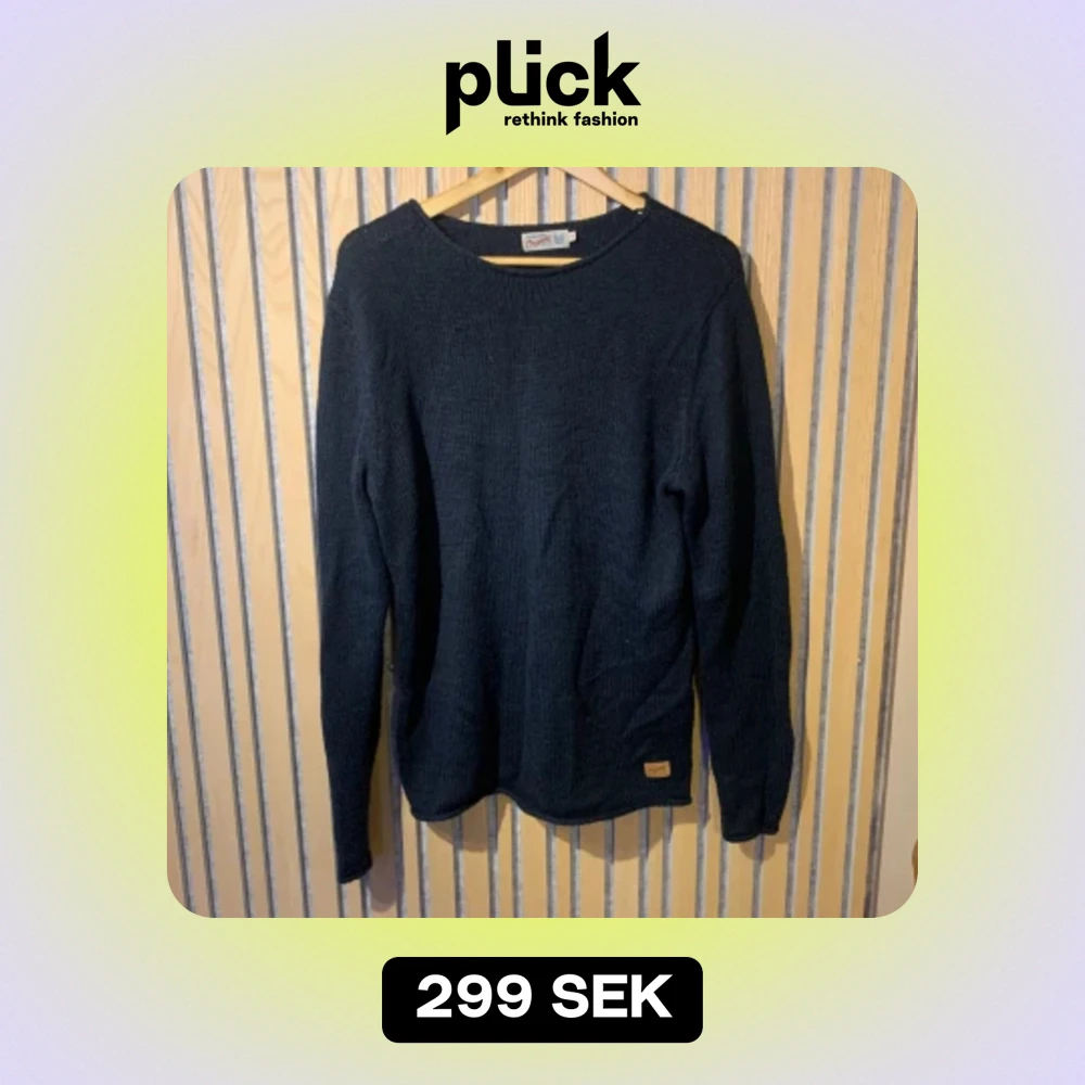 En stickad långärmad tröja från märket Jack and jones. Den är varm bekväm och snygg. Denna är i färgen mellan blå och svart samt att den är vintage och går inte att köpa längre. Inga defekter eller problem👍 Kontakta mig vid frågor 💯✅