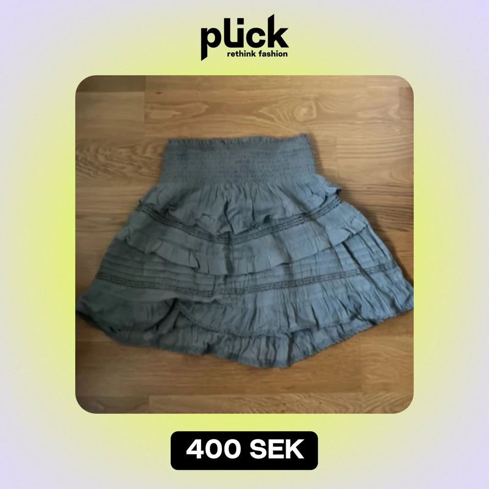 Säljer en superfin olivgrön/grå kjol från Neo Noir. Den har en smockad midja och flera lager med volanger som ger en härlig volym. Perfekt för både vardag och fest! 🩶köpt för 500kr och endast använd fåtal gånger så den är som ny!!