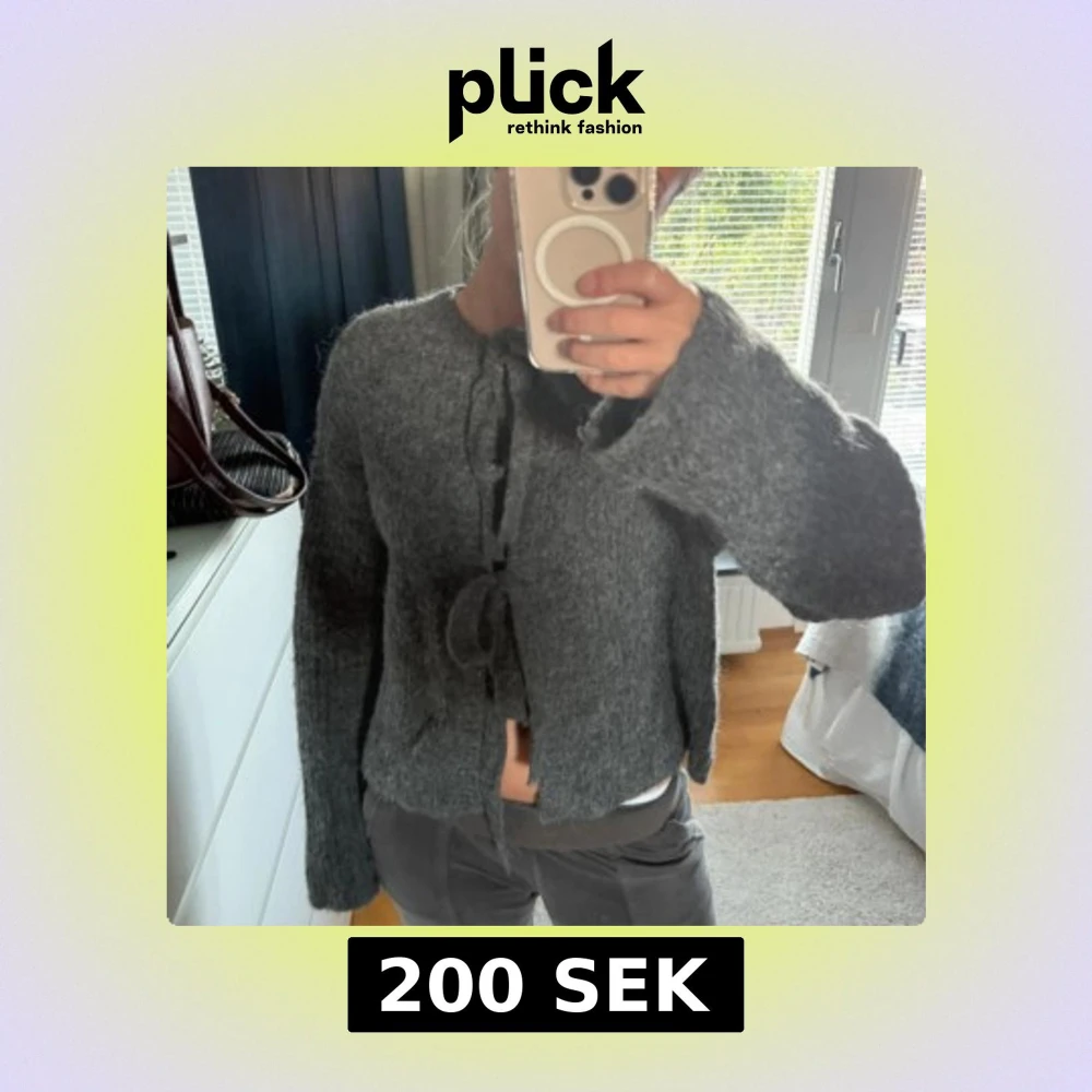 Mysig grå kofta från Gina Tricot i fluffigt stickat material. Man kan ha knytena både fram eller bak. Storlek xs.
