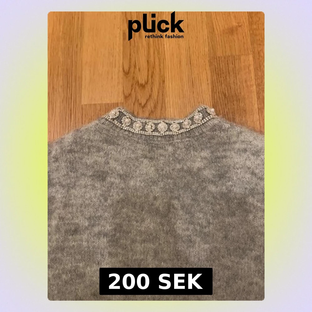 Superfin grå kofta från Zara med glittrande pärldetaljer och strass vid halsen. Koftan är stickad och har knappar framtill samt ribbade muddar vid ärmar och nederkant. Perfekt för dig som gillar att sticka ut med snygga detaljer. Vissa diamanter är borta men inget man tänker på.