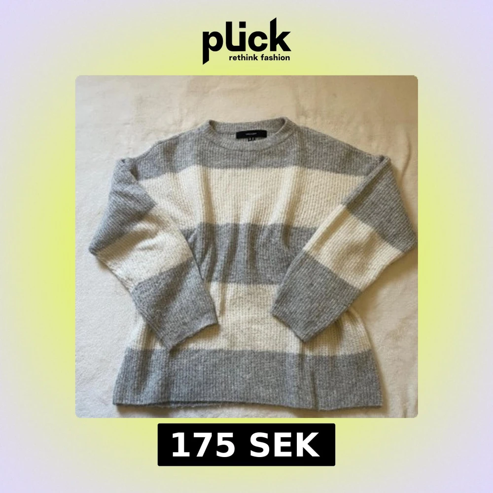 Mysig stickad tröja från Vero Moda i grått och vitt med breda ränder. Tröjan har en normal passform och långa ärmar, perfekt för kyligare dagar.
