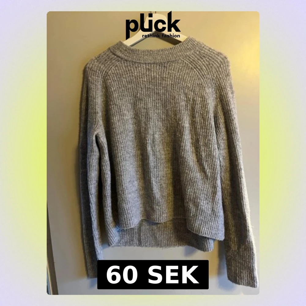 Mysig grå stickad tröja med ribbad struktur och rund hals. Tröjan har lång ärm och en något loose passform, perfekt för att hålla värmen under kyliga dagar. Enkel och stilren design som funkar till jeans eller mjukisbyxor.