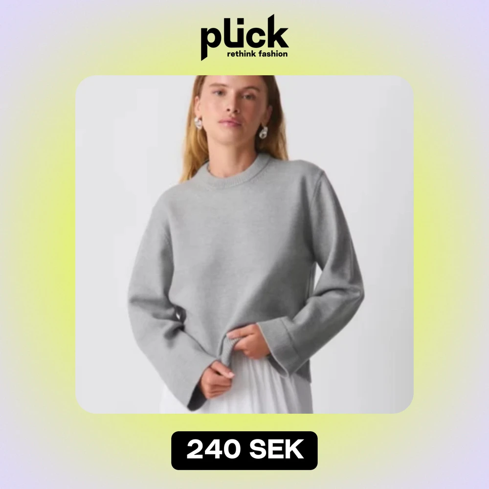 Helt oanvänd grå stickad tröja. Bra material som inte brukar noppra sig! Inte min stil och kom ej till användning!