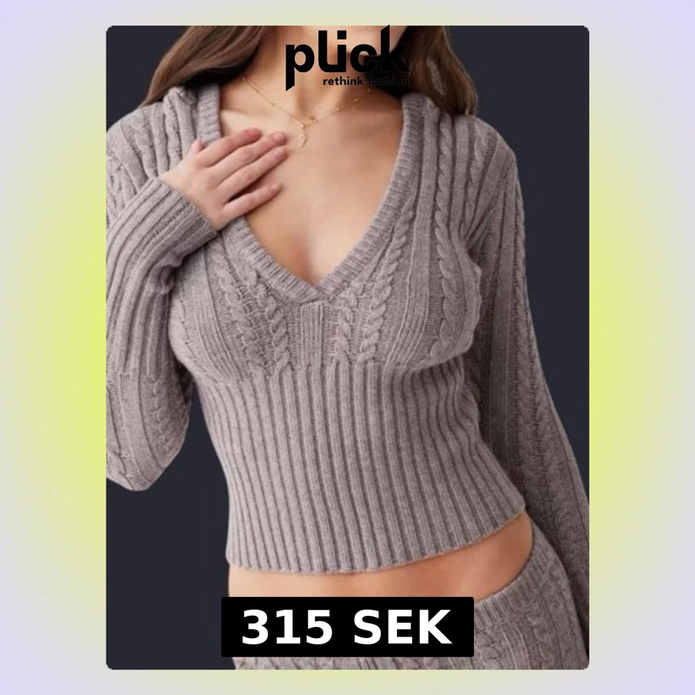 Snygg grå stickad hoodie med v-ringning. 2000s- stil