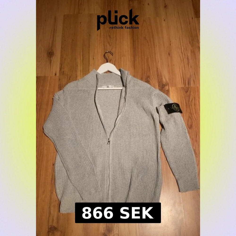 Säljer en grå stickad kofta från Stone Island med dragkedja framtill och ribbad struktur. Klassisk svart patch med logga på vänster ärm. Koftan har lång ärm och en clean, modern look som passar perfekt till jeans eller cargo. Fråga gärna om fler bilder eller info!