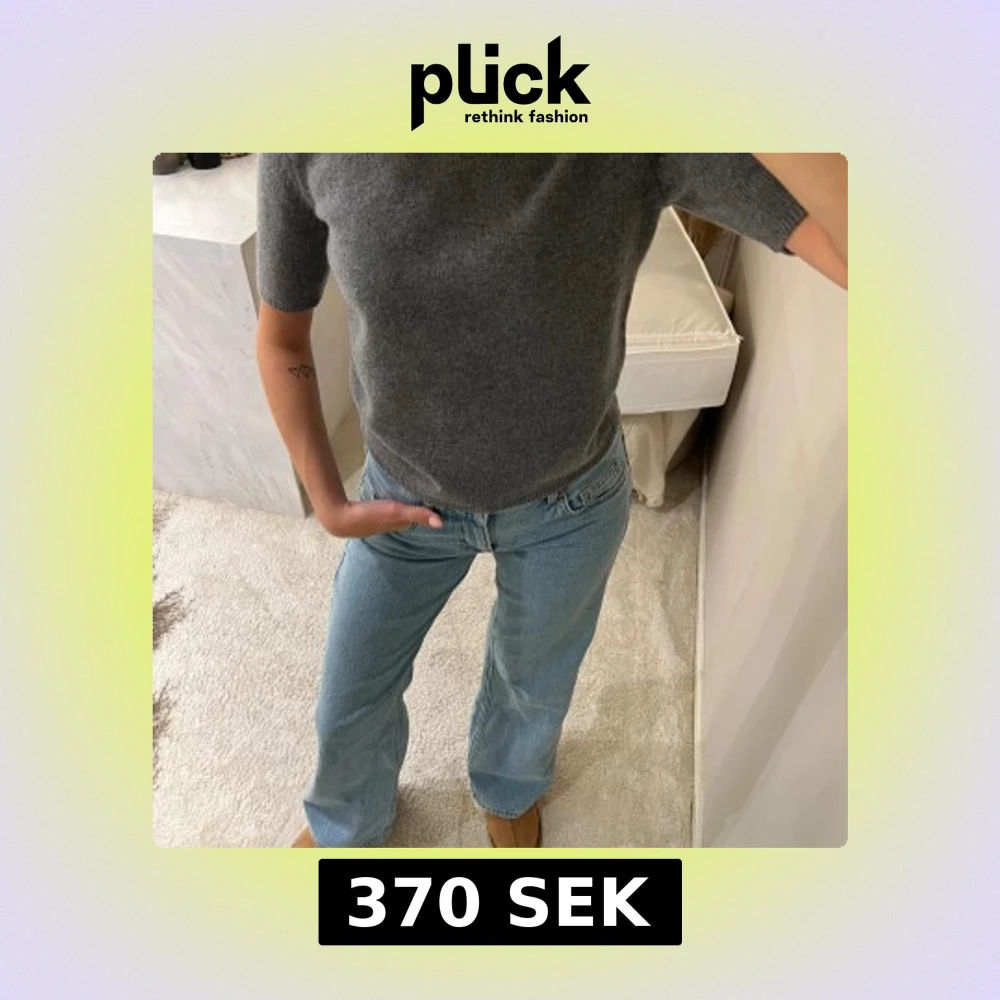 Mysig grå stickad topp från H&M i en blandning av ull och kashmir. Modellen har korta ärmar, rund halsringning och en klassisk, enkel design. Perfekt för dig som gillar en stilren och tidlös look.