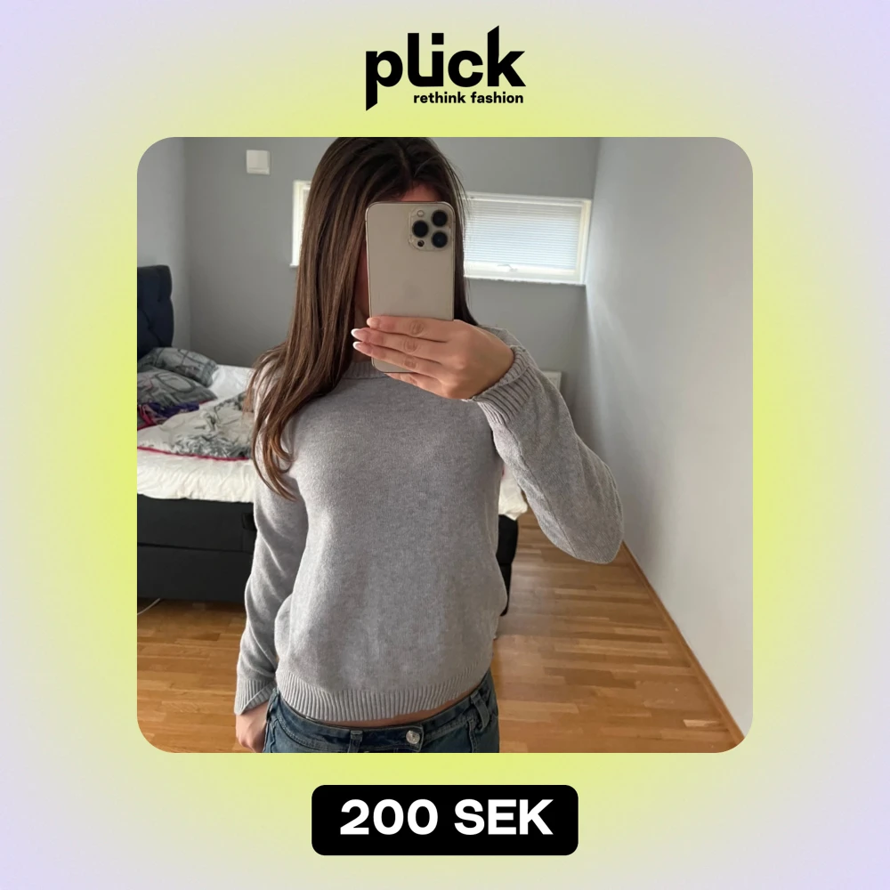 Säljer en supermysig grå stickad tröja i bra skick. Perfekt för höst och vinter med sin varma och bekväma passform. Tröjan har långa ärmar och ribbade muddar vid ärmslut och nederkant. Passar perfekt till jeans för en avslappnad look.