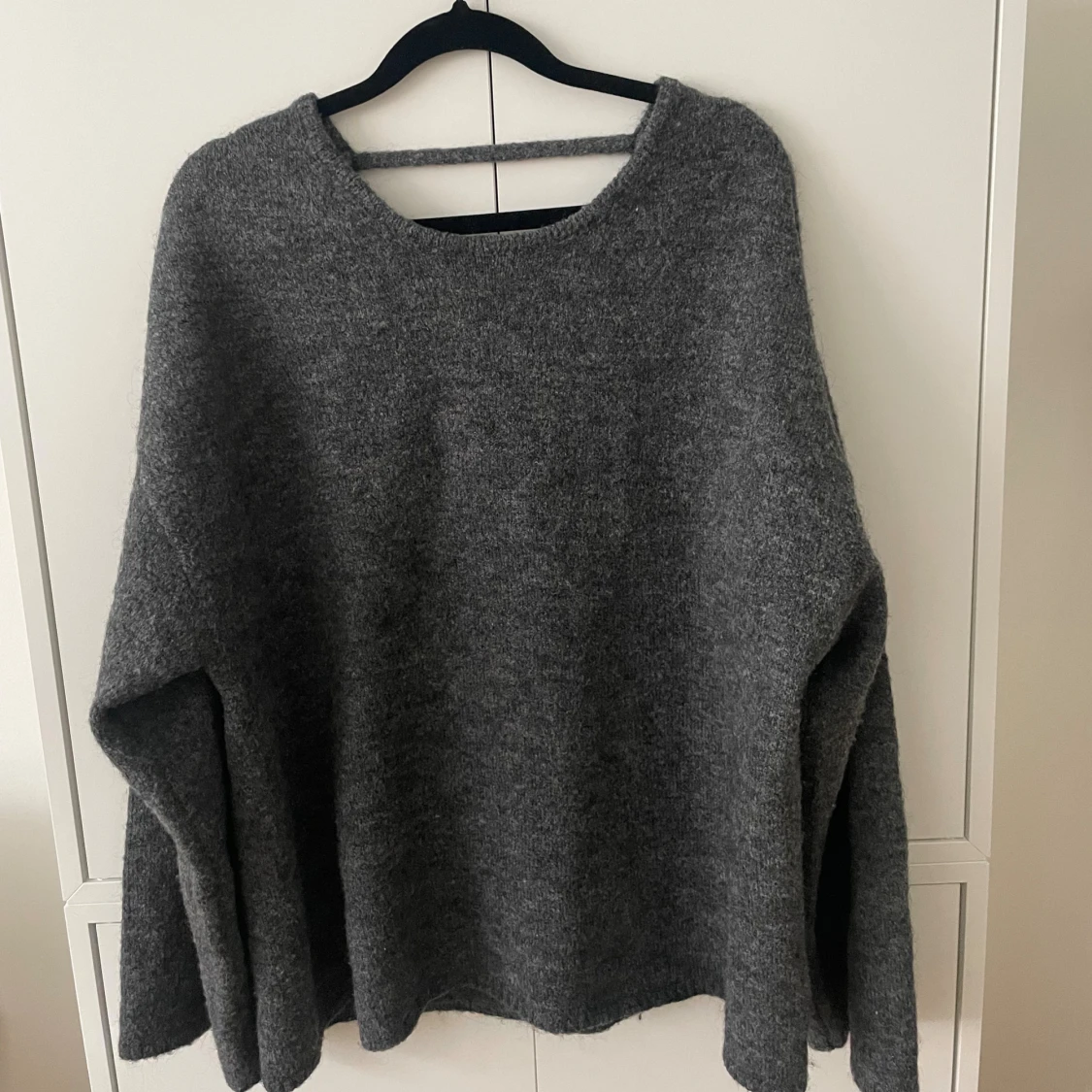 Grå stickad tröja med djup rygg från Gina Tricot. I ull och alpackamix. Som ny då den endast använts 2 gånger. Kan mötas upp i Sthlm, annars står köparen för frakten 🩷