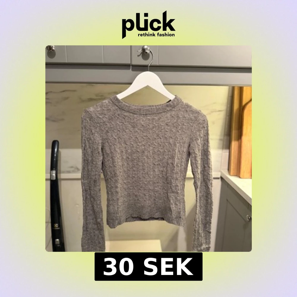 Säljer en grå stickad tröja med snyggt strukturmönster från BikBok.