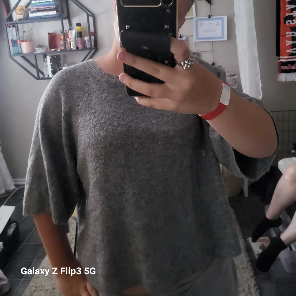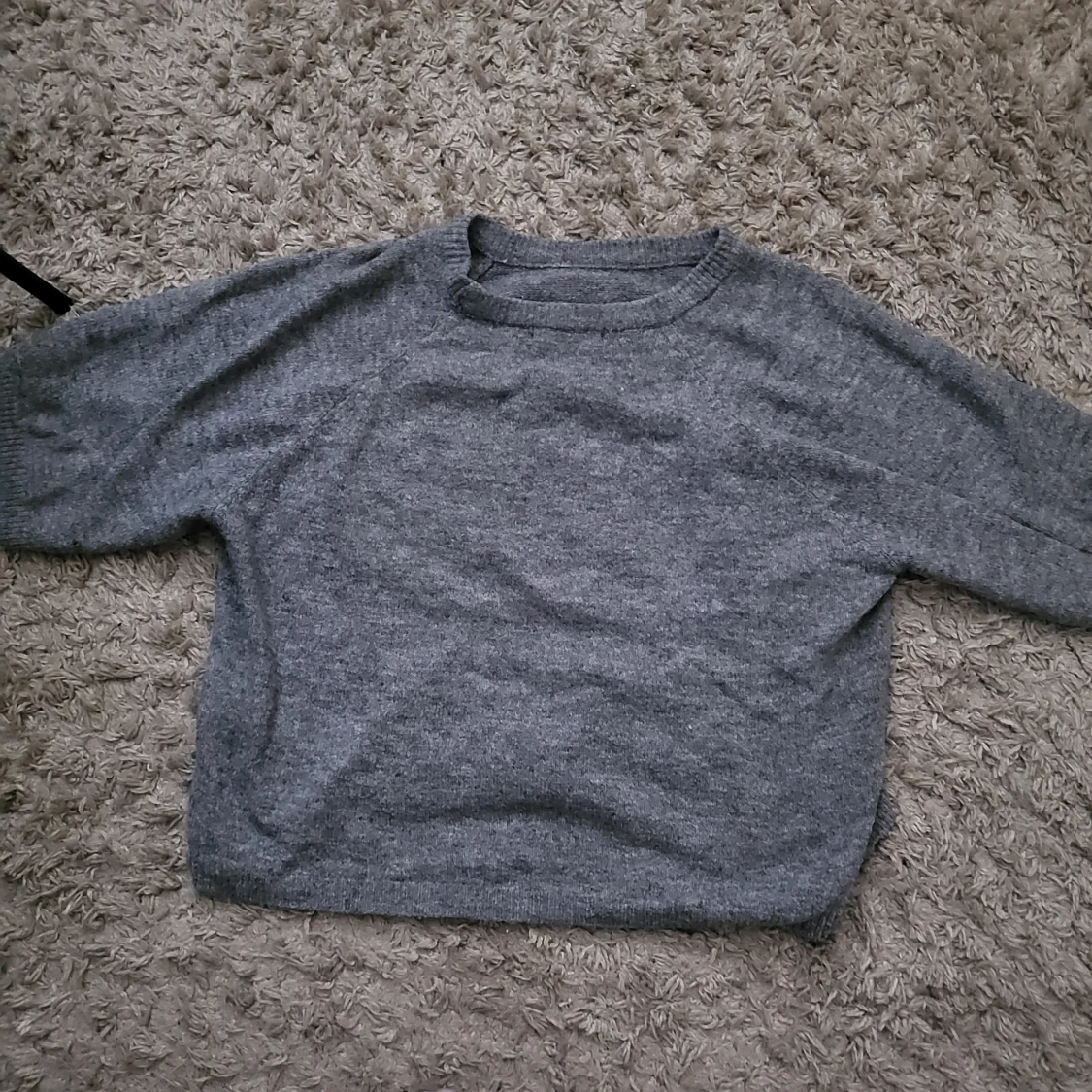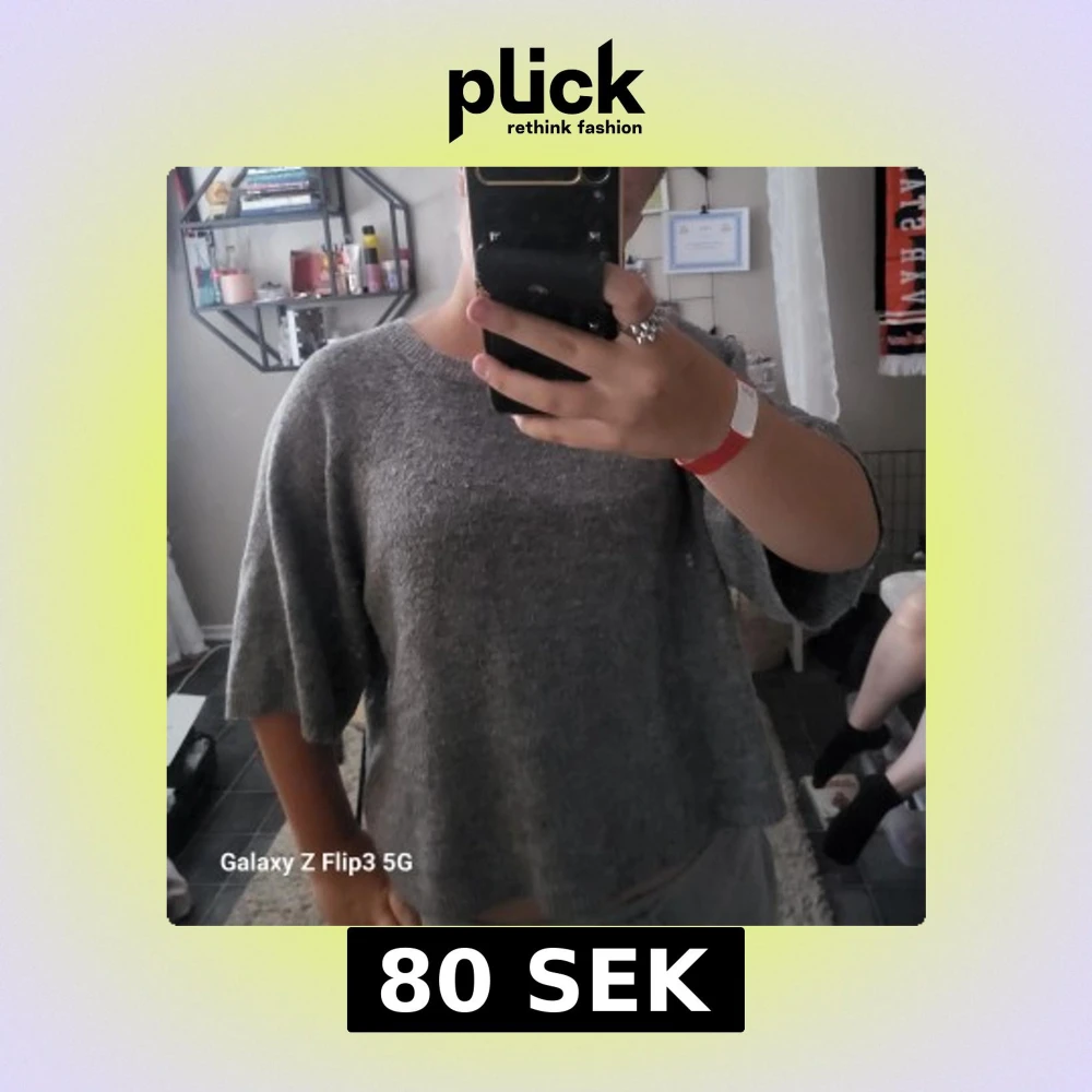 Mysig grå stickad tröja med rund hals och vida, lite kortare ärmar. Perfekt för lager på lager och chill dagar. Enkel och stilren design som funkar till det mesta. Skön och mjuk känsla tack vare det stickade materialet.