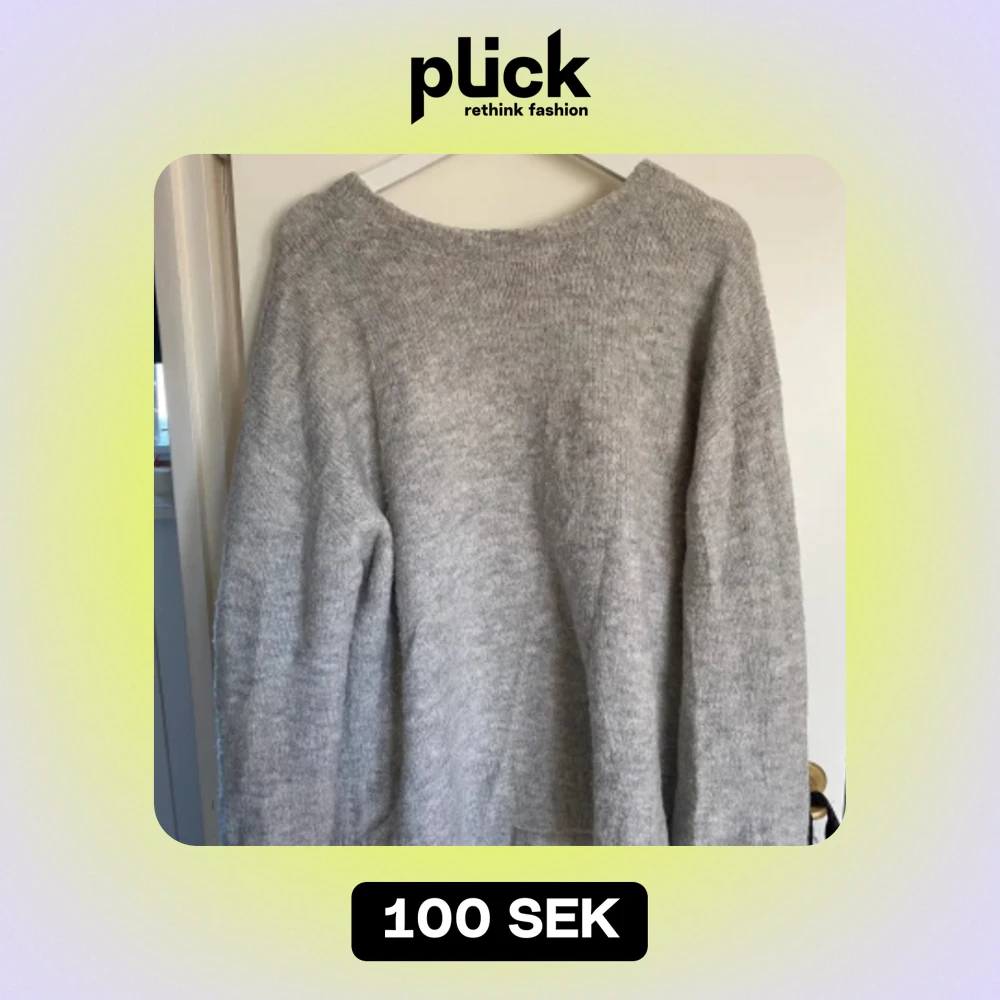 Grå stickad tröja!! Nice längd och lite breda ärmar☺️ Få defekter men inget som syns tydligt!