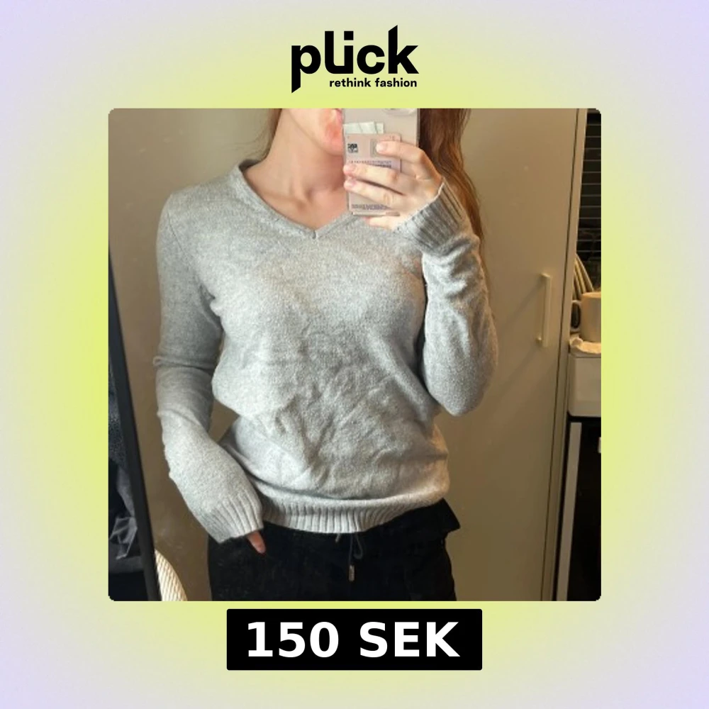 Grå v-ringad stickad tröja