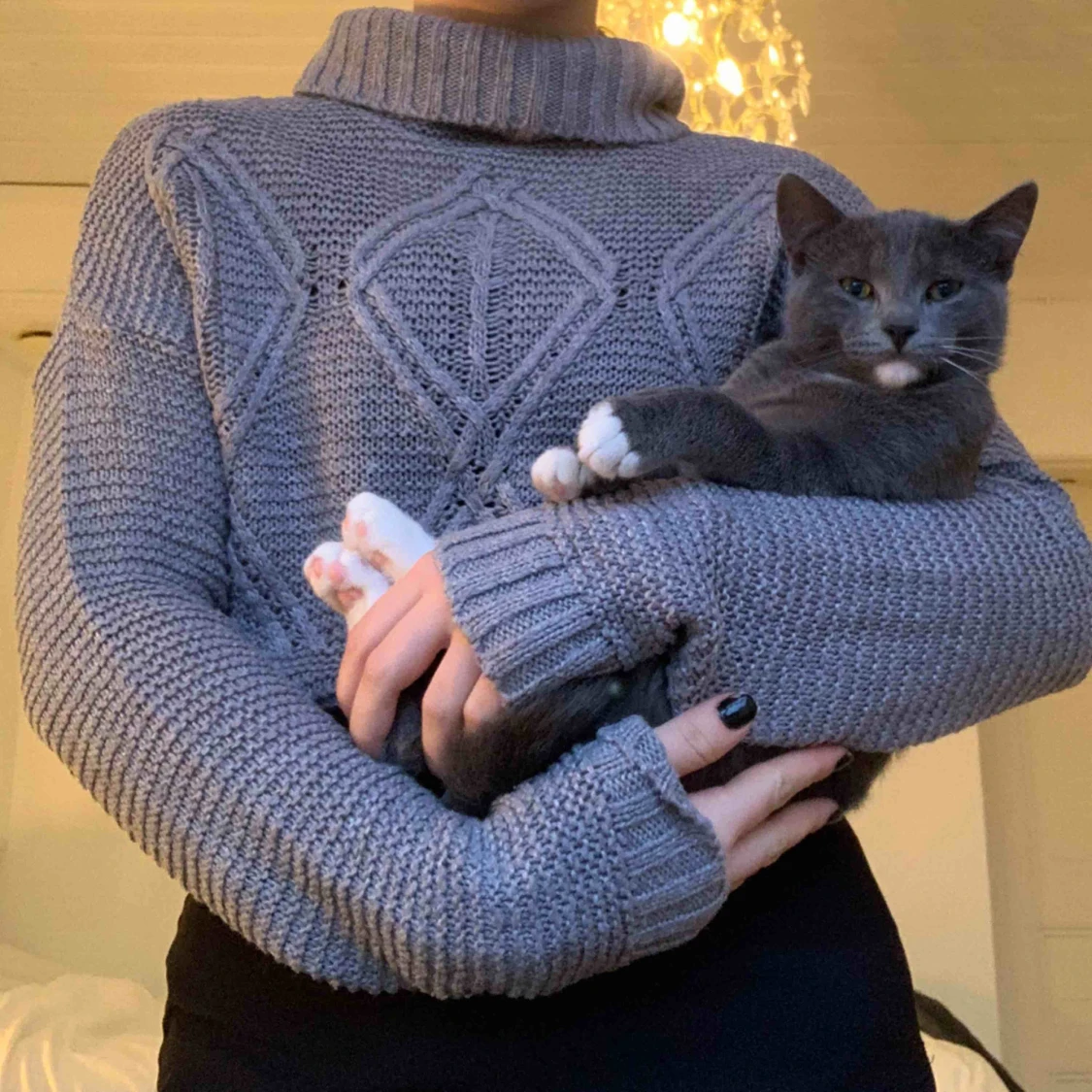 Grå stickad polo, är en M men är lite stor så skulle nog säga att det är en L