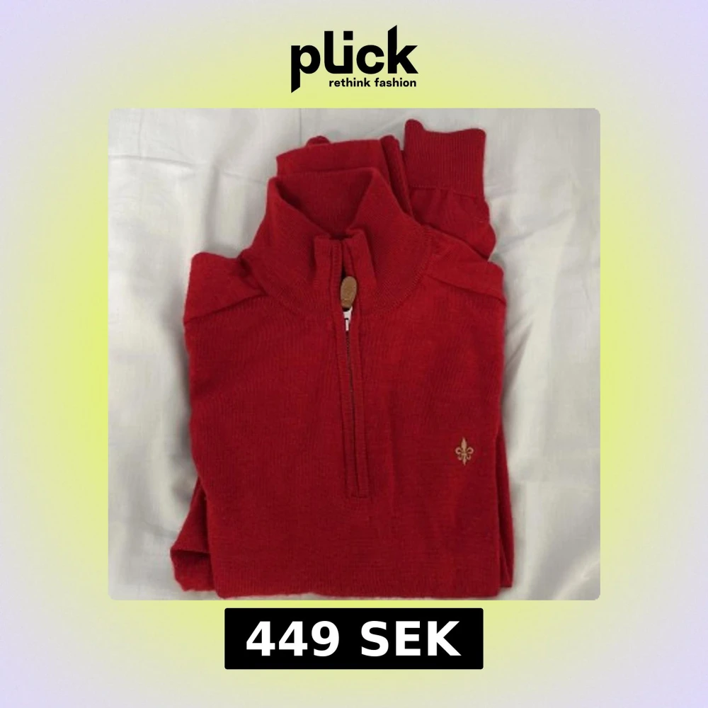 Riktigt snygg röd stickad tröja från Morris i mjuk merinoull. Halv dragkedja med läderdetalj och broderad logga på bröstet. Hög krage och långa ärmar, perfekt för kyliga dagar. Klassisk och stilren modell som är lätt att matcha.