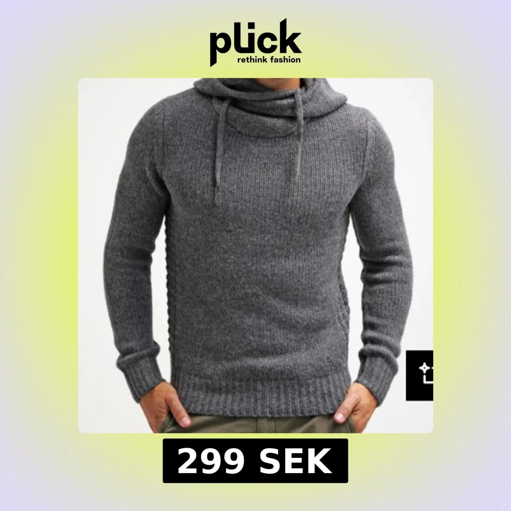 (Oanvänd) Mysig grå stickad hoodie med snörning i huvan och ribbade muddar. Perfekt för kyliga dagar och har en klassisk, enkel look som funkar till det mesta. Långärmad och i mjukt material som känns skönt mot huden.