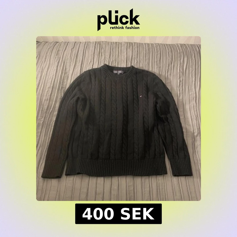 Svart kabelstickad tröja från Tommy Hilfiger i storlek M. Tröjan har rund hals, ribbade muddar och ett litet broderat logomärke på bröstet. Perfekt för dig som gillar klassisk stil med snygga detaljer och vill ha något som funkar året runt. Har krymt pga tvätt så mer åt S hålet.