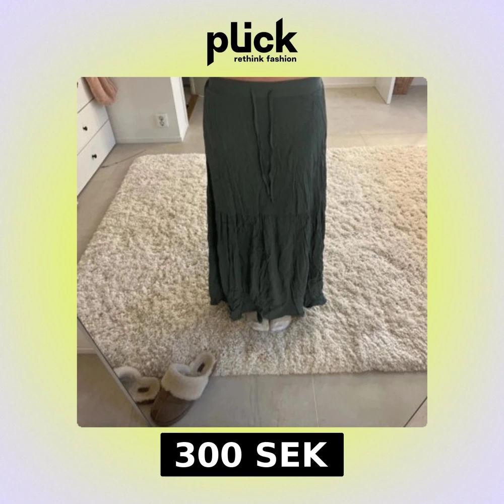 Snygg grön långkjol i ett mjukt och flödande material. Kjolen har en avslappnad passform och en diskret volangdetalj nedtill som ger en fin rörelse. Perfekt för en bohemisk look eller en avslappnad dag ute. Passar bra med en enkel topp eller stickad tröja.
