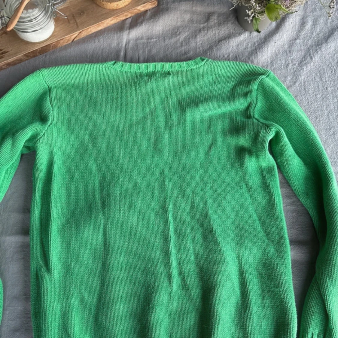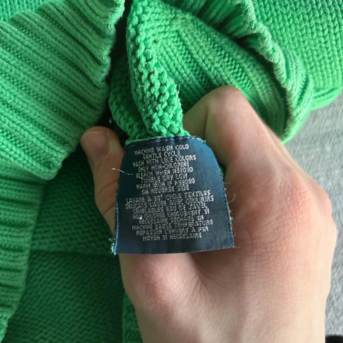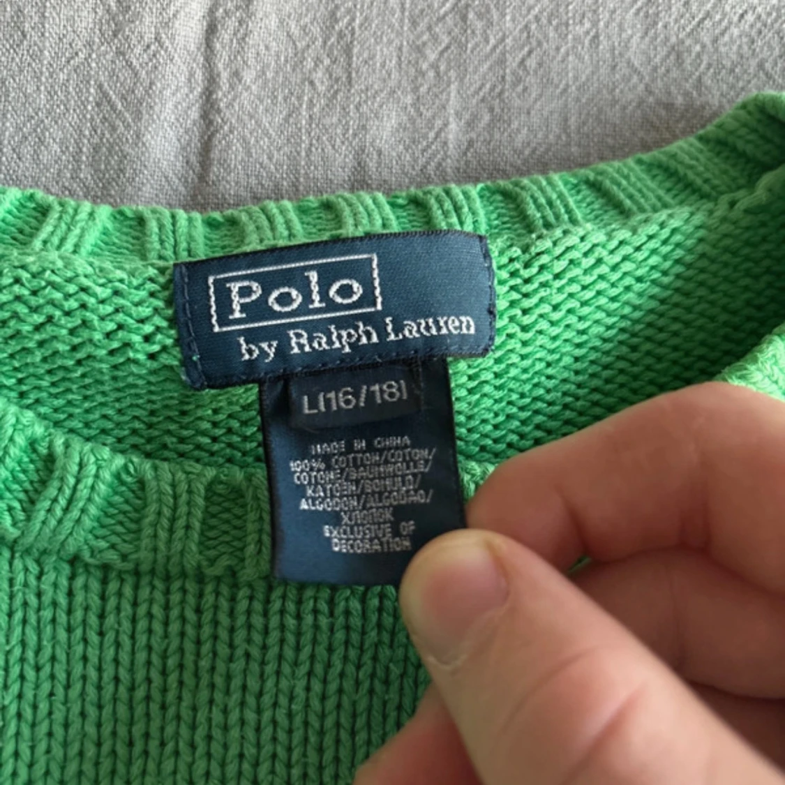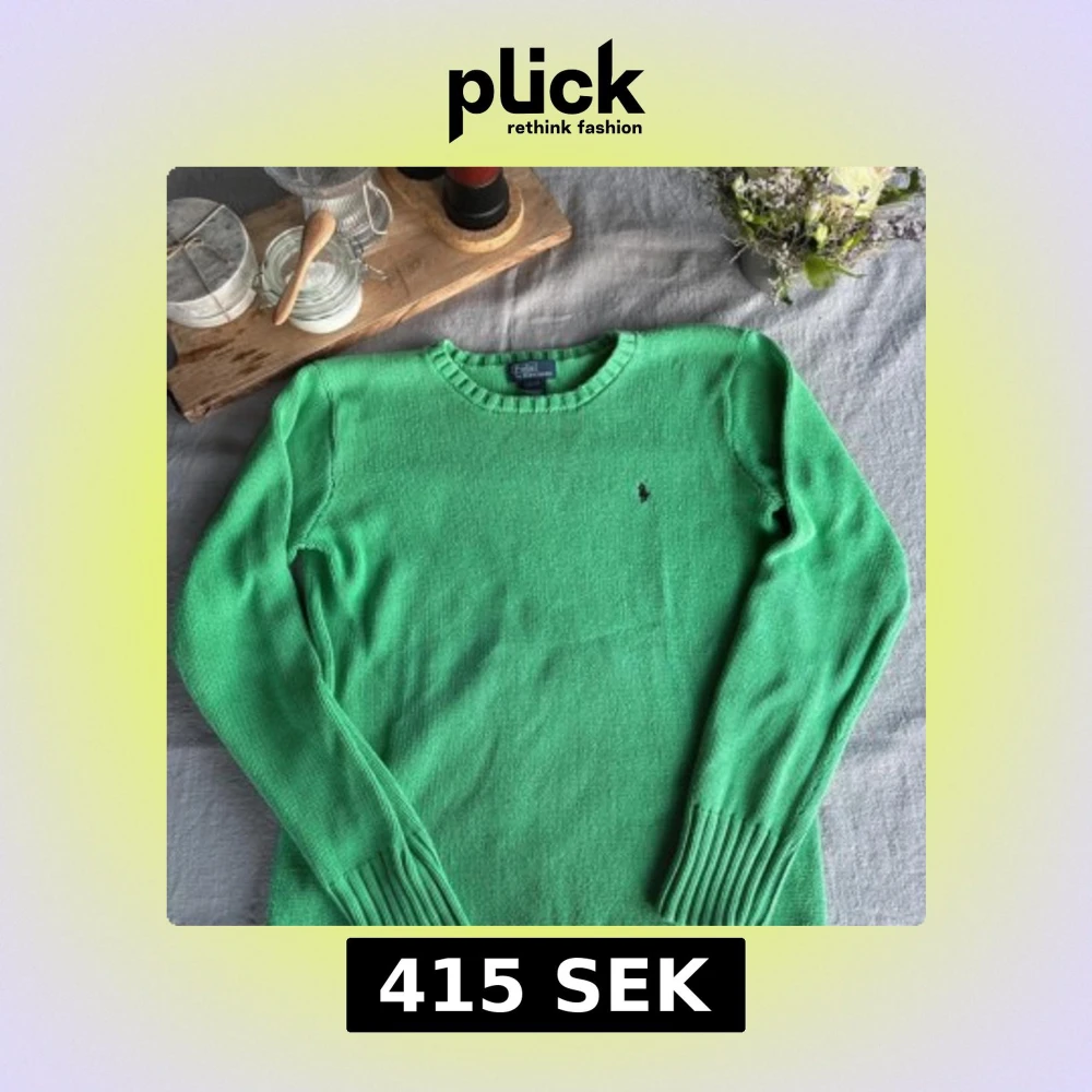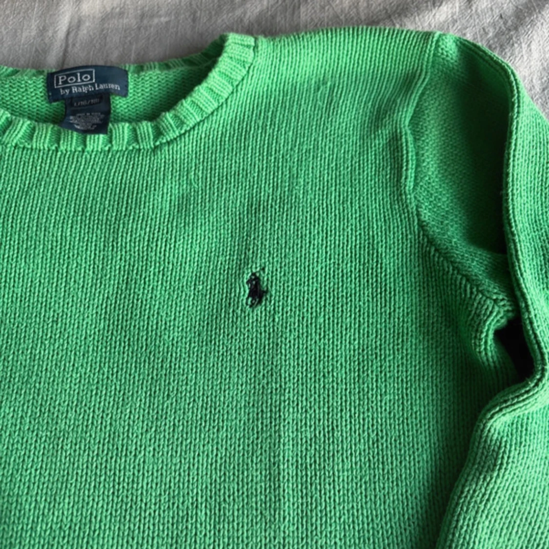 Säljer en snygg grön stickad tröja från Polo Ralph Lauren. Tröjan har en klassisk rund halsringning och ett diskret broderat märke på bröstet. Perfekt för en stilren look. 💚