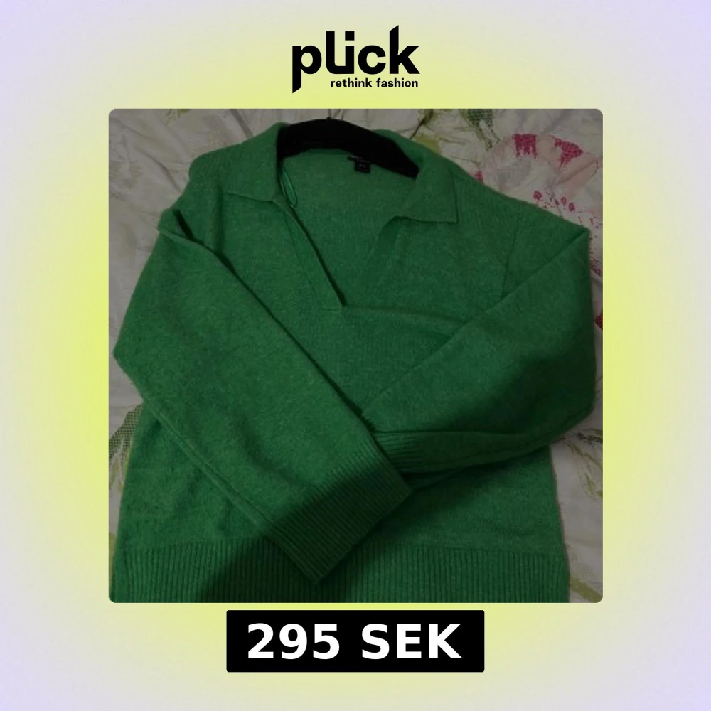 Grön stickad tröja från Lindex med klassisk krage och v-ringning. Tröjan har långa ärmar och breda ribbade muddar vid ärmslut och nederkant. Perfekt för dig som vill ha en färgklick i garderoben.