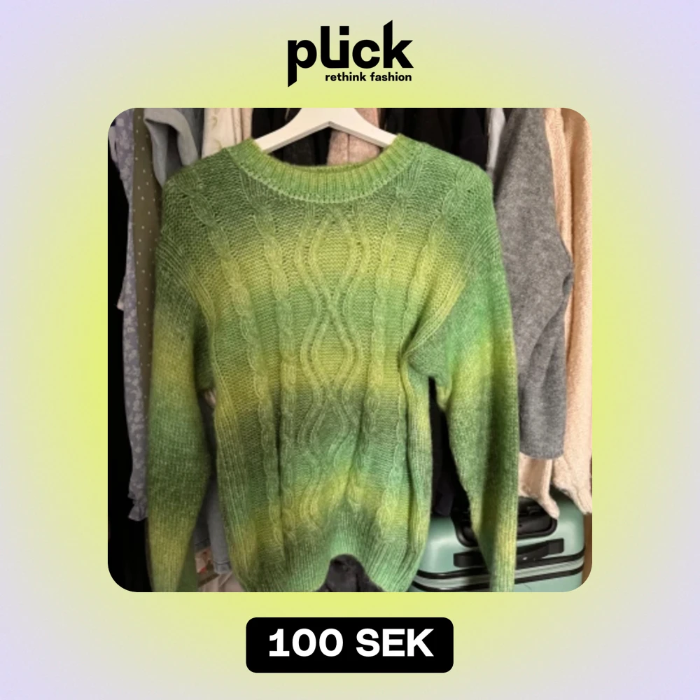 Säljer denna gröna stickade tröja från okänt märke, ser ingen storlek på tröjan men gissa på S💕